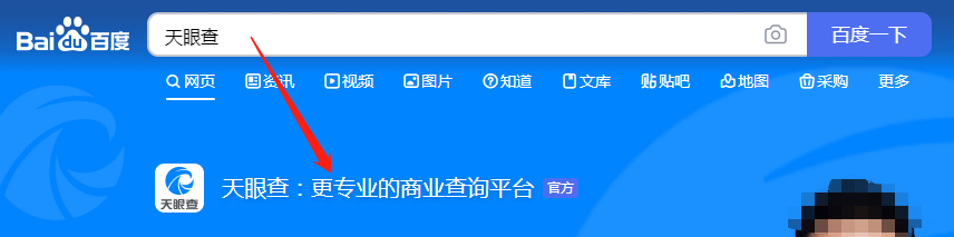 步驟1:在瀏覽器中搜索“天眼查”,點擊進入。(也可以從上方查詢入口進入查詢)