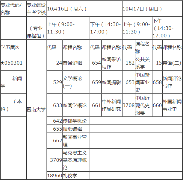 2021年10月廣東自考050301新聞學(xué)考試安排(本科)