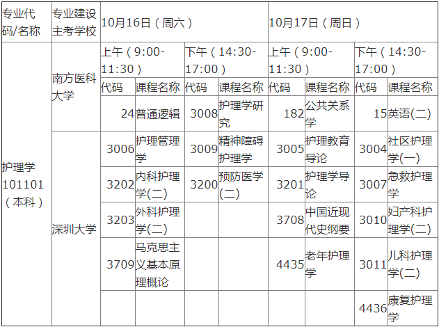 以上就是關于“2021年10月廣東自考護理學本科考試安排表”的全部內容,想要了解更多深圳自考資訊、自考報名指南、自考復習資料等相關信息可以持續關注 深圳自考網
