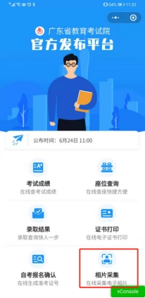 (1)在廣東省教育考試院官方小程序上選擇報(bào)名相片采集,選擇考生端進(jìn)入。