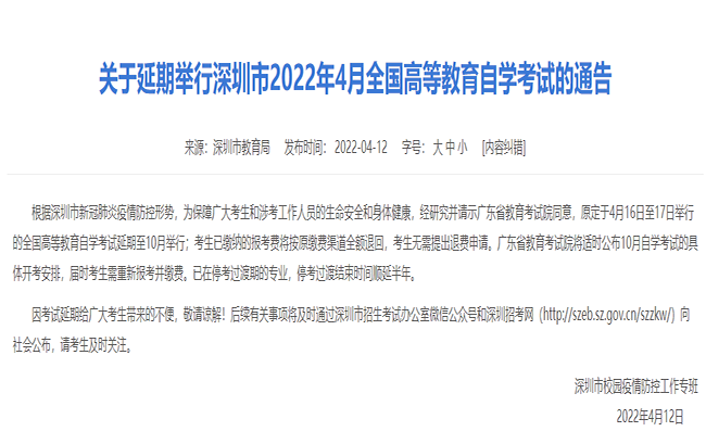 - 2022年4月廣東深圳自考延期至10月份... 07-20